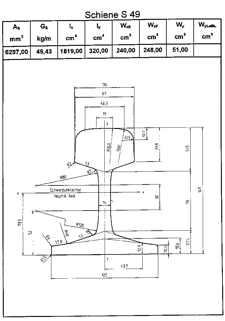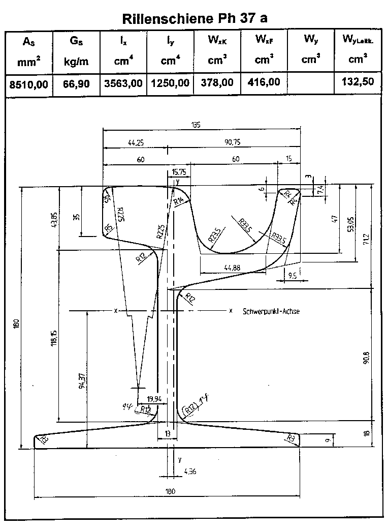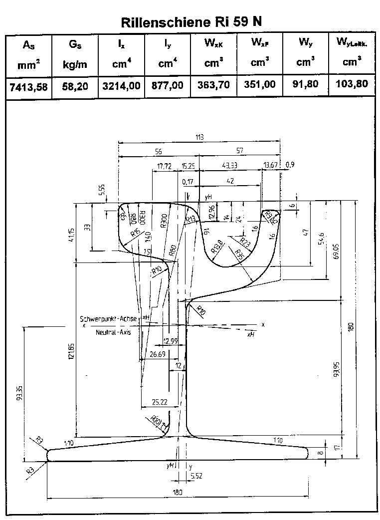 technische und betriebliche Spezifikationen (z.B. Spurweite, Lichtraumprofile,
